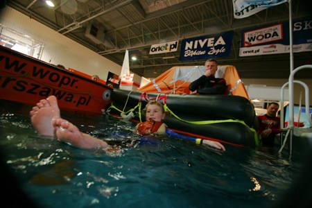 My też na targach byliśmy, poza ekspozycją sprzętu ratunkowego, asekuracyjnego i konfekcji ratowniczej, robiliśmy pokazy w ramach akcji społecznej "Bezpieczna Woda", której pomysłodawcą i organizatorem wraz z nami jest Sun Yacht Charter i Onet. Pl.